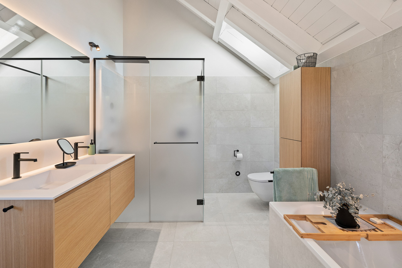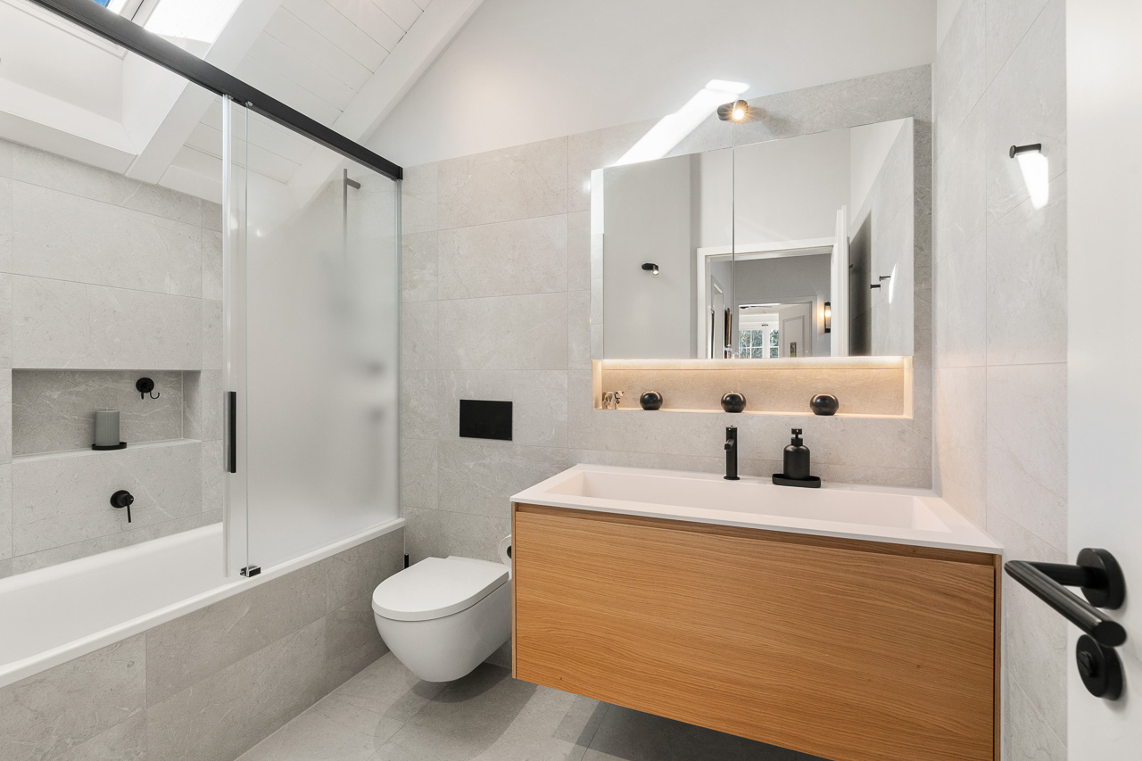 Immobilienfotografie - Einfamilienhaus - Bergdietikon, Aargau. Badezimmer