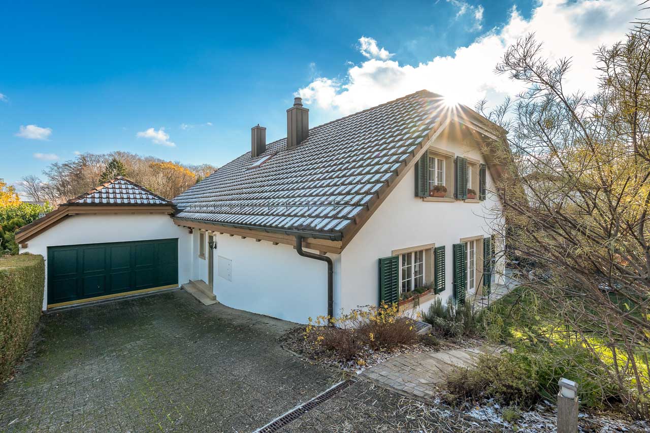 Immobilienfotografie - Einfamilienhaus - Bergdietikon, Aargau. Aussenaufnahme
