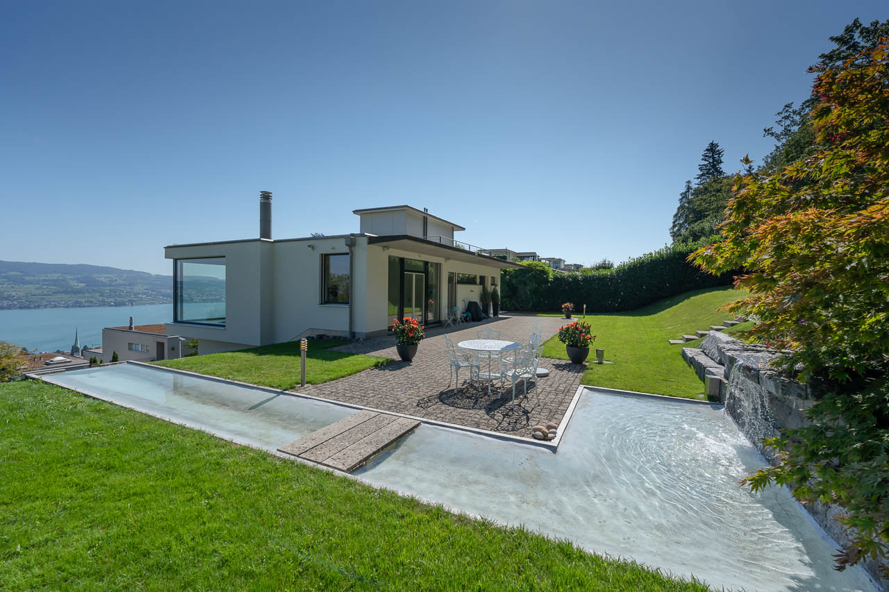 Immobilienfotografie - Horgen, Zürich, Schweiz - Luxus Villa - Aussenaufnahme mit Garten